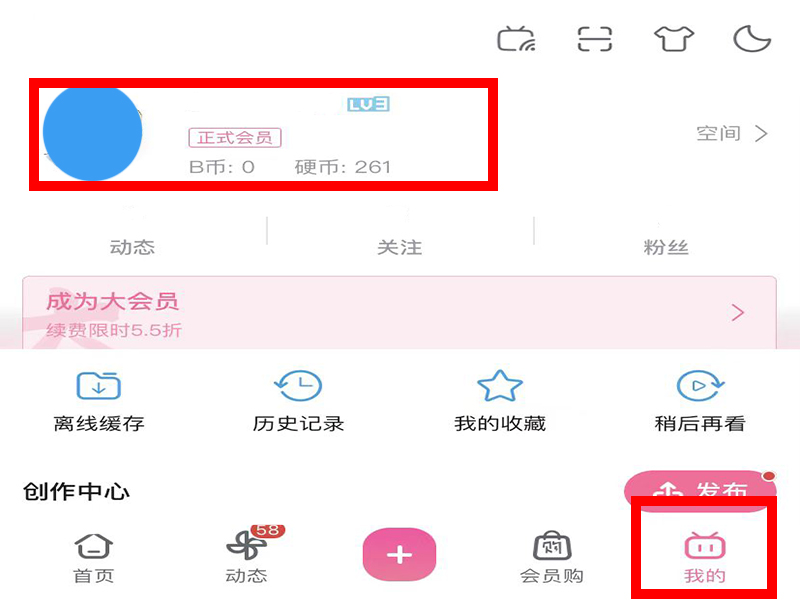 1、打开哔哩哔哩app,进入“我的”的界面,点击上方的个人头像。