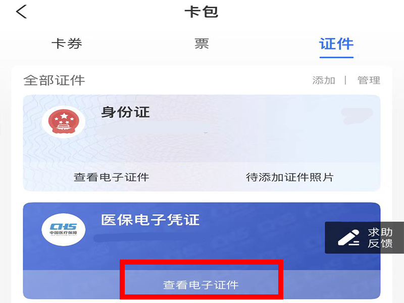 3、在“证件”界面就可以看到电子医保卡了。