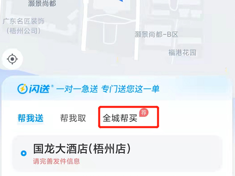 1、打开闪送app,点击全城帮买。