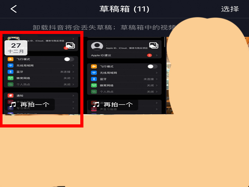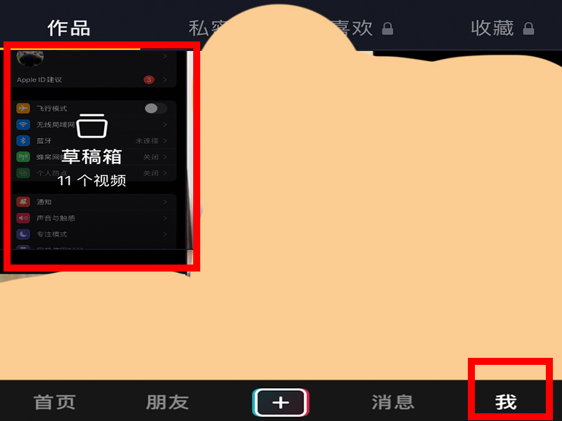 1、打开抖音,点击进入“我”的界面,并点击“草稿箱”。