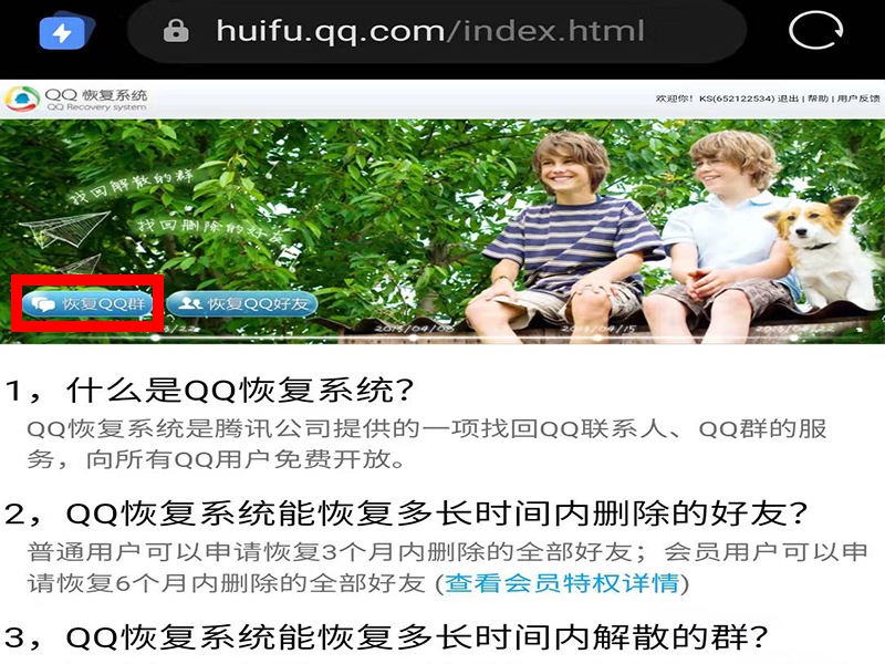 2、进入“QQ恢复官方网站”后,找到并点击“恢复QQ群”。