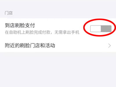 5、打开“到店刷脸支付” 的开关,便可以在商场的自助机上使用刷脸支付。