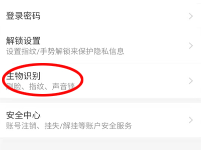3、点击“生物识别”,进入生物识别页面。