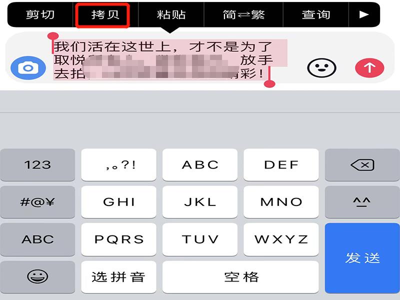 5、长按视频文案弹出功能框,即可点击“拷贝”将文案进行复制。