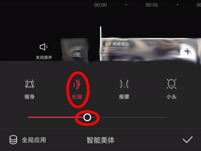 5、点击“长腿”,调整长腿的参数,点击“√”即可完成。