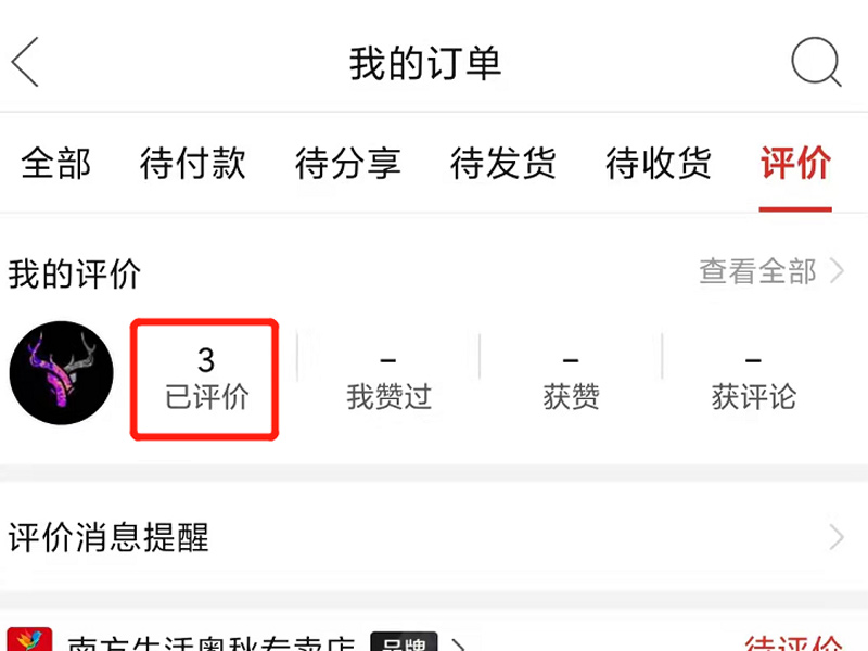 2、点击进入我的订单界面后,点击评价,再点击已评价。