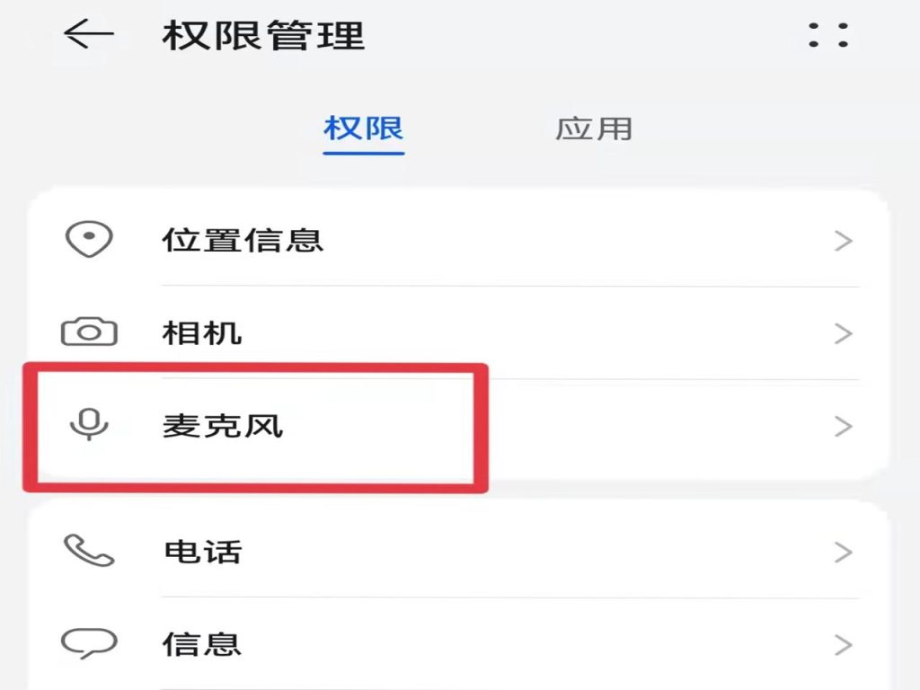 4、返回权限管理页面,点击“权限”下的“麦克风”。