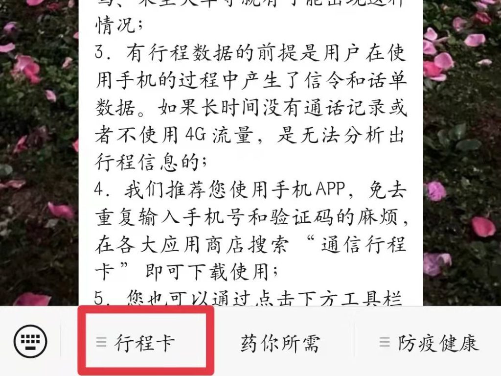 微信关注,获取更多 查询个人行程码的具体操作步骤如下:1、打开微信APP,搜索“通信行程卡”公众号,进入公众号主页。2、点击“行程卡”,再点击“行程卡小程序”。3、输入手机号和验证码,勾选同意,点击查询即可。
