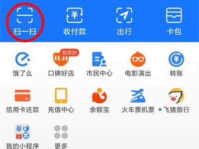 1、打开支付宝,切换到首页,点击左上角的扫一扫。