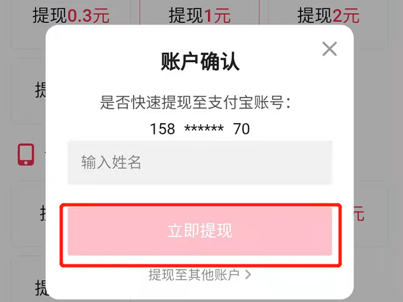 4、点击进入提现界面后,选择一个提现方式和金额,确认账户后点击立即提现即可。