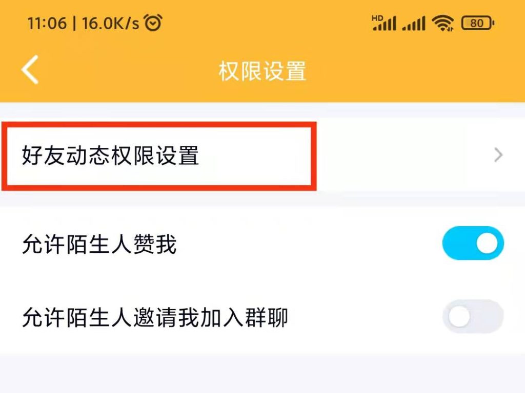 3、点击“隐私”,再点击“权限设置”,进入“好友动态权限设置”。