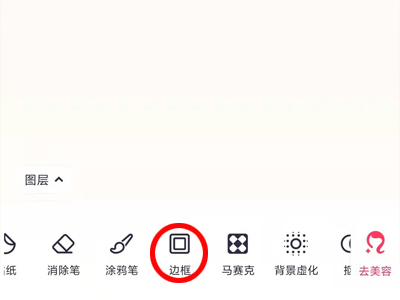 2、导入图片后,往右滑动下方的功能,点击“边框”。