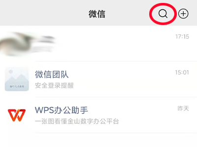 1、打开微信,点击左下角“微信”,点击右上角的放大镜。
