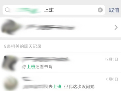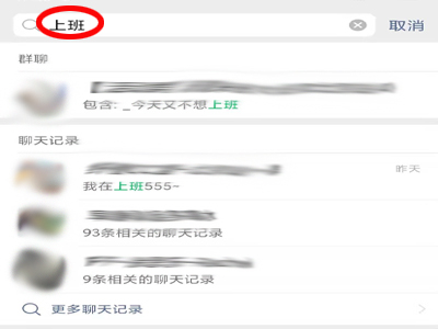 2、在搜索框内输入想要找的聊天记录,便会自动出现相关聊天信息,点“更多聊天记录”可以展开被收起的信息。