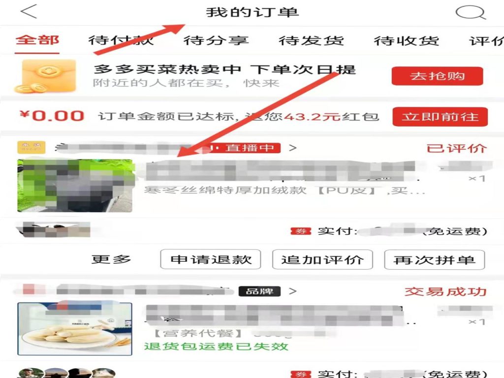 2、点击“我的订单”右侧的“查看全部”,选择需要追加评价的订单。