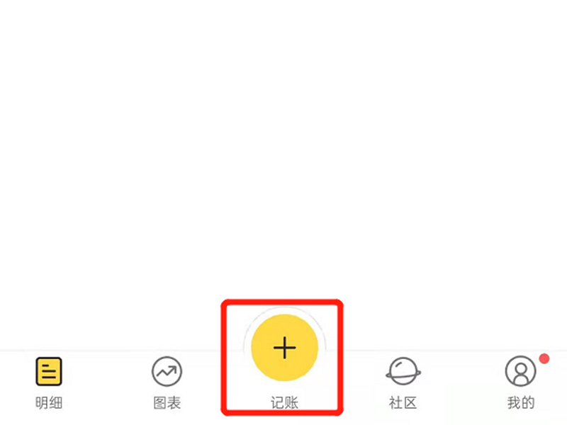 1、打开手机鲨鱼记账app,点击下方记账加号标志。