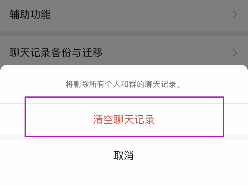 3、点击最下方的“清空聊天记录”,点击确定,即可清除微信的缓存内容。