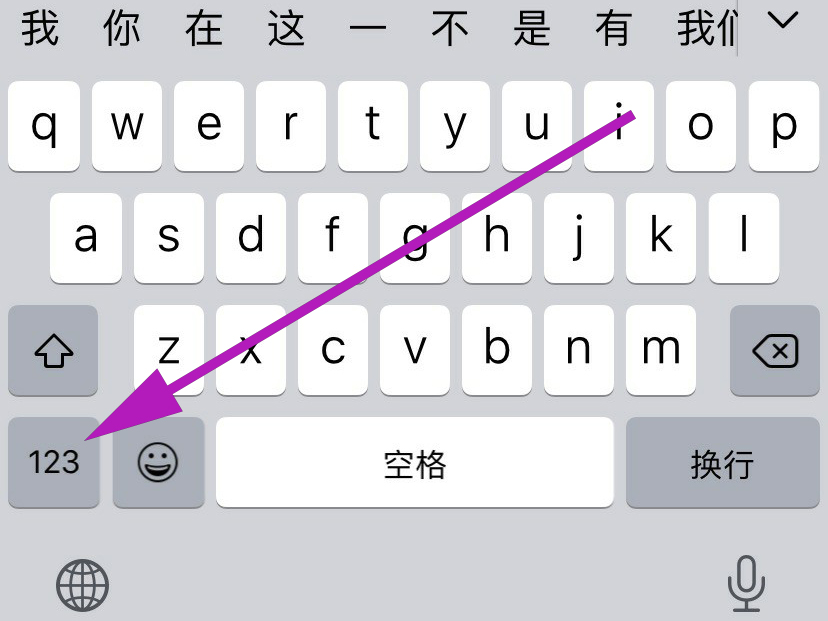 1、以苹果输入法为例,当我们要输入文字时,弹出输入键盘,点击左下角的123图标。