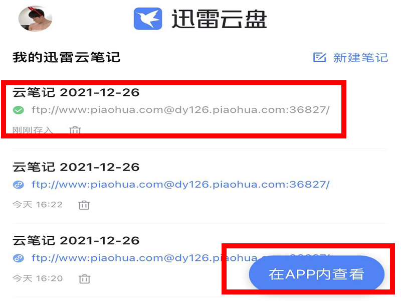 4、在弹出来的“迅雷云盘”界面中点击刚刚复制的链接,再点击下方的“在app内查看”即可。