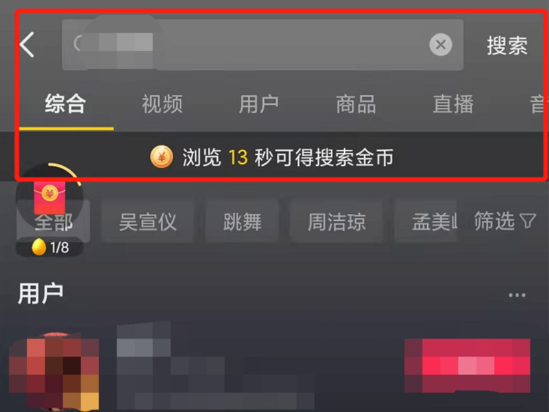 4、进入搜索界面后,再搜索框内输入需要搜索的内容点击搜索,最后等待15秒即可获得金币。