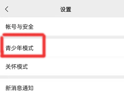 2、在设置页面中点击“青少年模式”。
