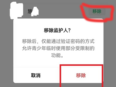 4、点击青少年监护人后方的“移除”。