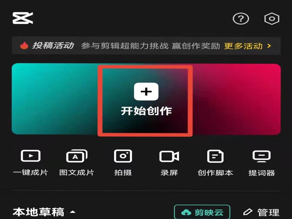 1、打开手机剪映,点击“开始创作”上方的“+”图标。
