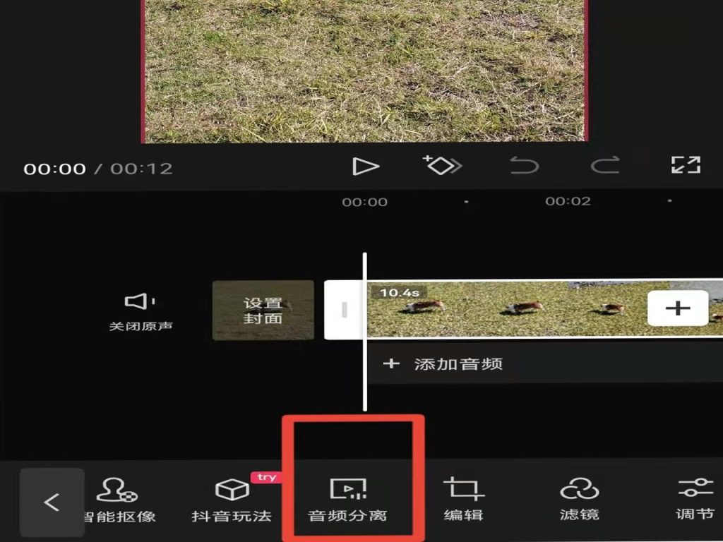 3、点击视频左下角的“剪辑”,选择下方的“音频分离”。