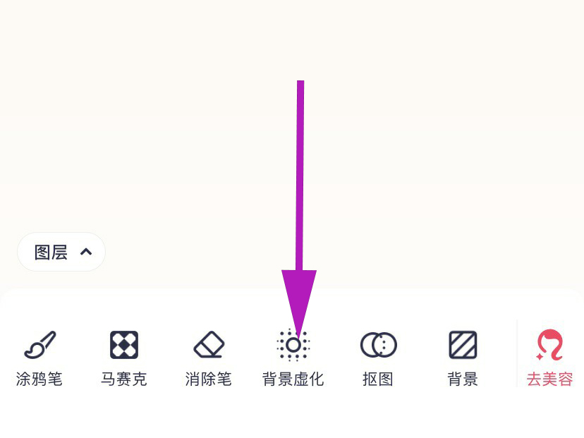 3、在图片美化页面下方的功能栏处,找到背景虚化功能,然后点击进入。