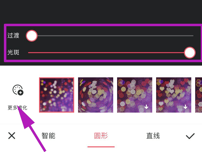 4、在虚化背景页面的下方,可以找到各种虚化照片的方式,接着就可以根据自己的需求对照片进行虚化。