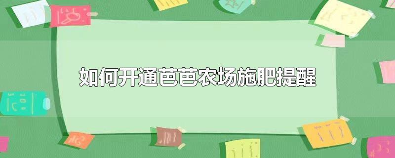 开通芭芭农场施肥提醒的步骤如下:1、打开支付宝,如果没有把芭芭农场放在主页里,则需要通过搜索的方式来进入芭芭农场。2、在芭芭农场的右上角,有一个三点的图标,点击打开。3、点击“设置”,进入芭芭农场的设置页面。4、在设置页面中找到提醒选项,然后勾选即可。