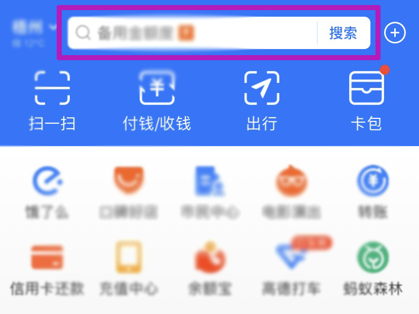 1、打开支付宝,如果没有把芭芭农场放在主页里,则需要通过搜索的方式来进入芭芭农场。