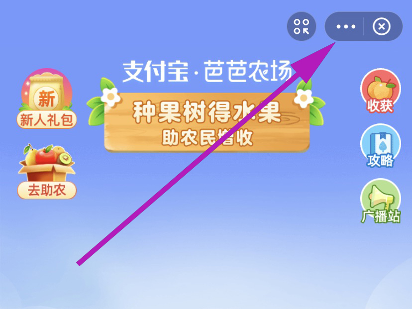 2、在芭芭农场的右上角,有一个三点的图标,点击打开。