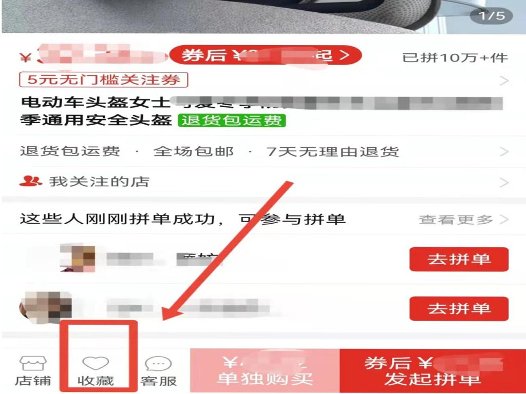 2、点击进入商品首页,点击左下方的“收藏”按钮。