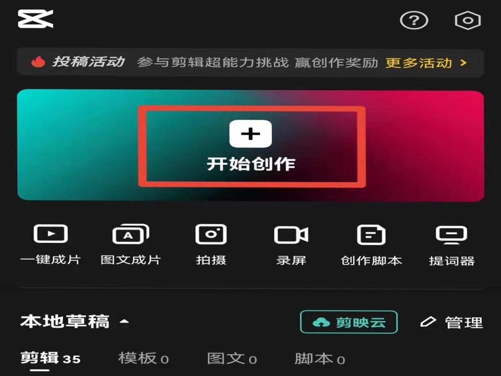 1、打开手机剪映,点击“开始创作”上方的“+”图标。