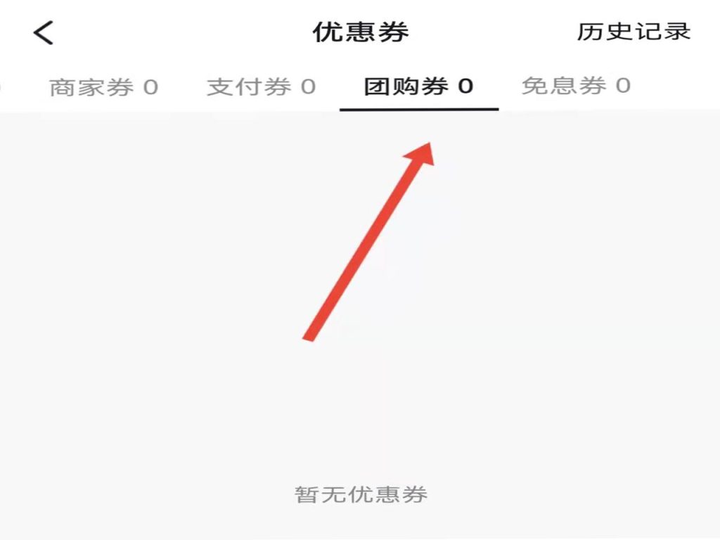 4、在优惠券界面点击“团购券”,即可查看购买的团购餐饮。