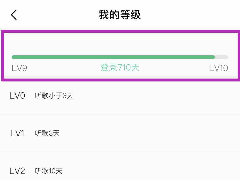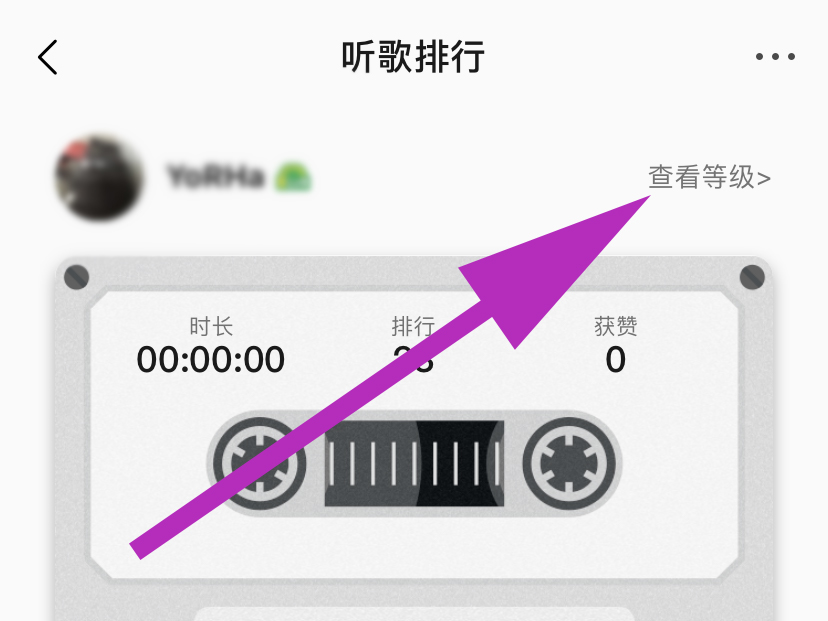 4、找到听歌排行页面当中的“查看等级”,然后点击进入。