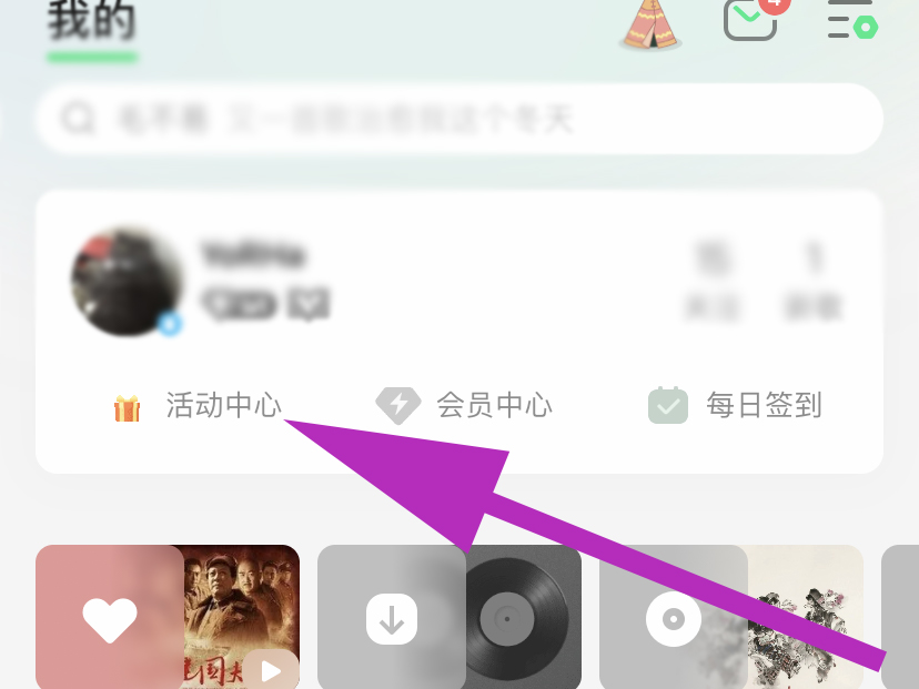 2、找到自己主页当中的“活动中心”,然后点击进入。