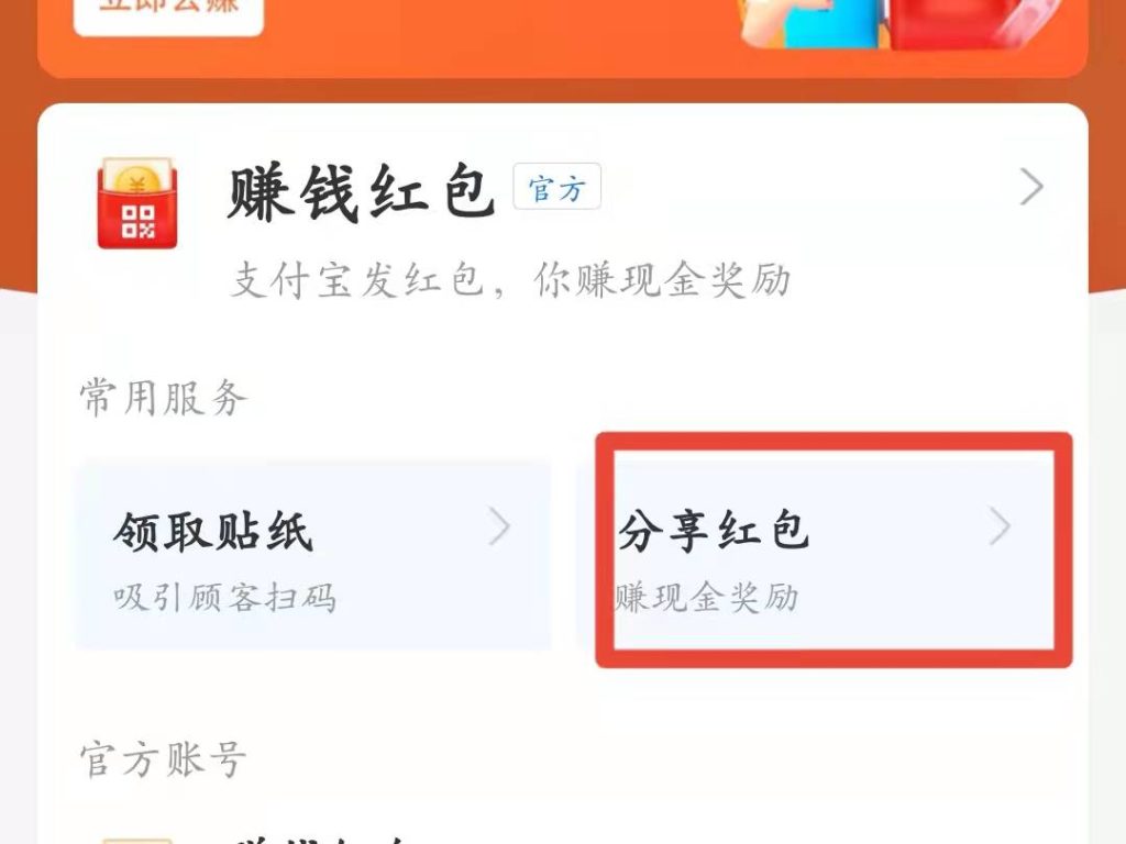 微信关注,获取更多 生成支付宝红包码具体操如下:1、打开支付宝,搜索“赚钱红包”,点击进入小程序界面。2、点击“分享红包”按钮,即可生成。