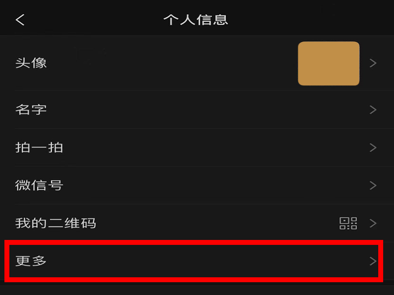 微信关注,获取更多 切换微信性别的具体操作方式如下:1、打开微信,点击进入“我”的界面,再点击上方的头像。2、进入“个人信息”界面后,点击“更多”。3、进入“更多”界面后,点击上方的性别就可以进行切换了。