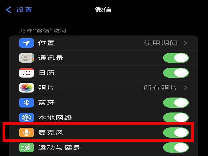 微信开启麦克风的具体操作方式如下:1、打开手机,点击进入“设置”界面。2、进入“设置”界面后,拖动屏幕往下滑找到找到并点击“微信”选项。3、进入“微信”界面后,查看“麦克风”是否被关闭,如果被关闭,点击旁边的标识将其打开即可。