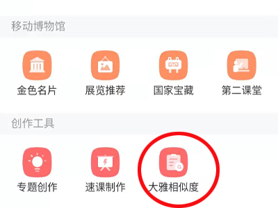 3、点击创作工具模块中的“大雅相似度”。