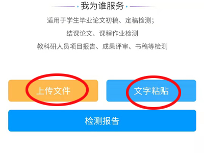 4、可以选择“上传文件”或“文字粘贴”,将需要查重的文档上传。