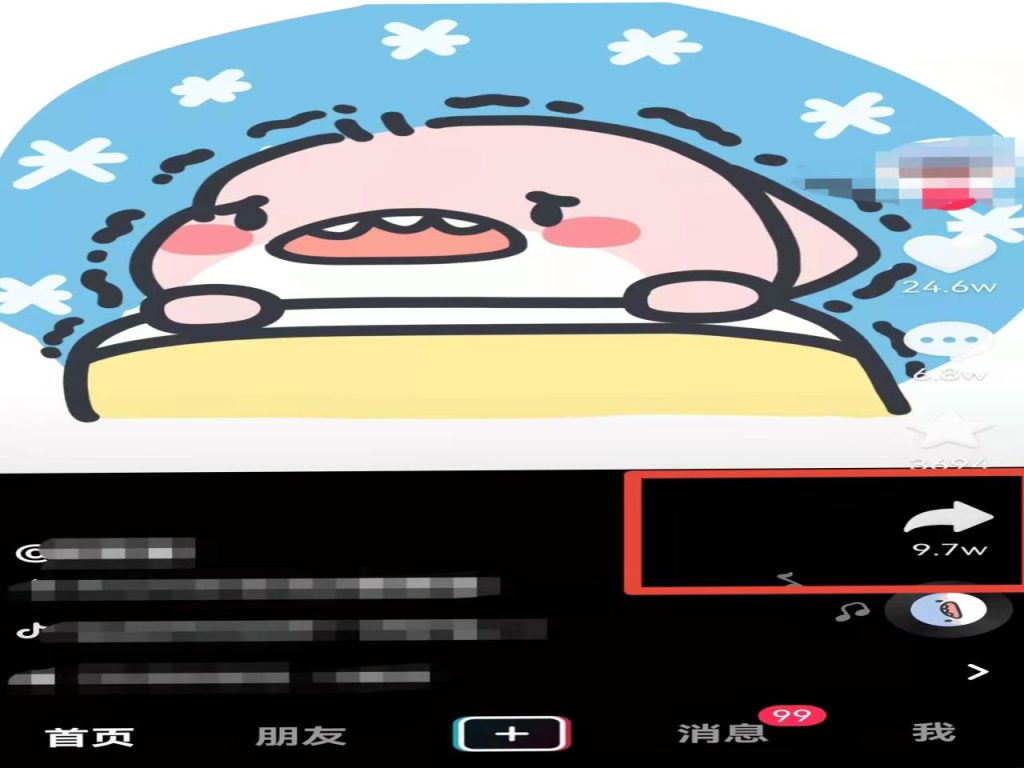 1、打开手机抖音软件,点击视频页面上的“箭头”分享按钮。