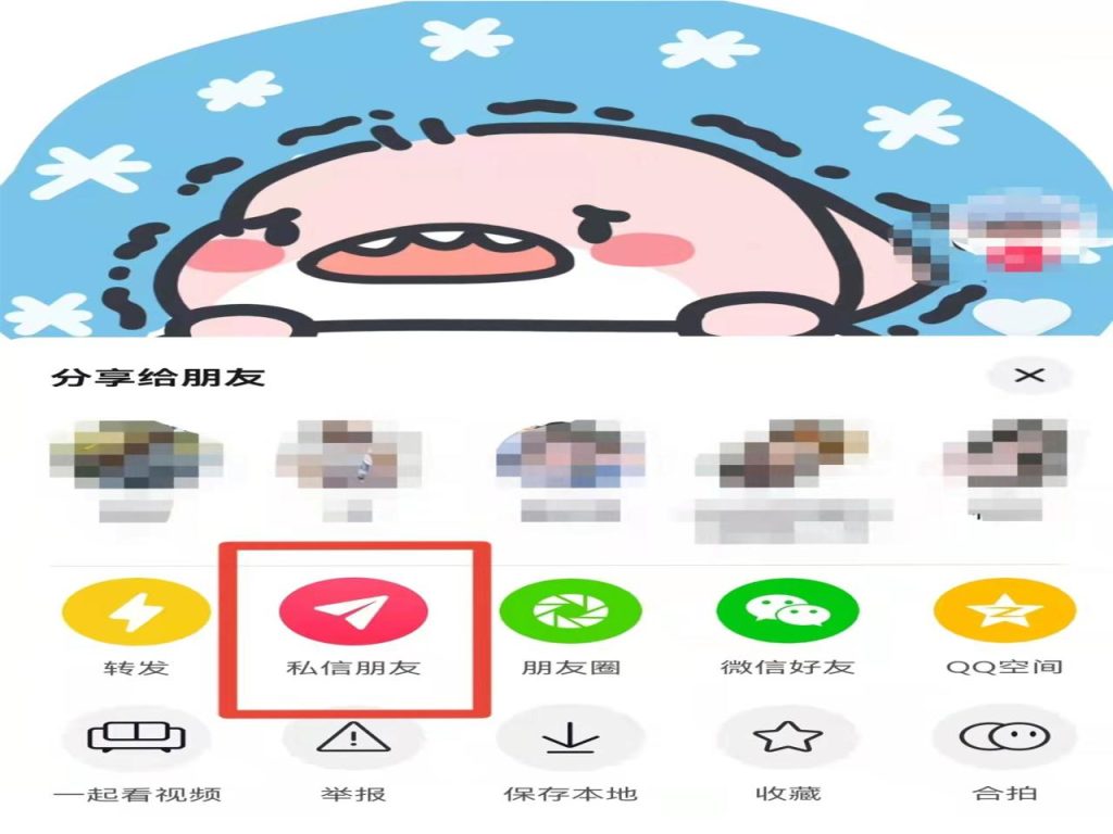 2、在下弹的选项中点击“私信朋友”,并进行分享。