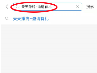 1、打开支付宝,切换到首页,在顶部的搜索框内输入“天天赚钱-邀请有礼”。