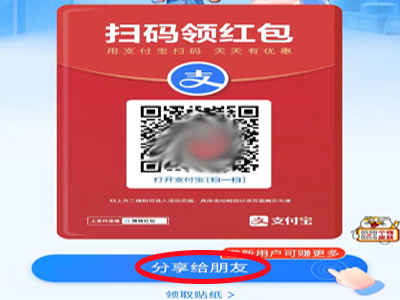 支付宝天天领红包二维码的领取具体操作步骤如下:1、打开支付宝,切换到首页,在搜索框内输入“天天赚钱-邀请有礼”。2、点击“赚钱红包”,进入赚钱红包官方服务。3、点击“立即赚现金红包”,弹出二维码。4、点击“分享给朋友”,即可以将二维码保存到相册,或通过微信、支付宝等分享给朋友。