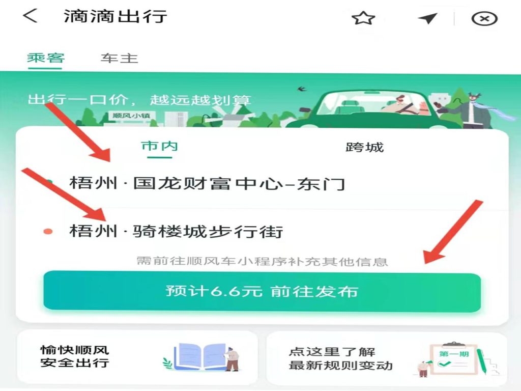 微信关注,获取更多 在支付宝预约顺风车的操作方法如下:1、打开手机支付宝,点击“滴滴出行”。2、在滴滴出现页面点击“顺风车”。3、确定好乘车的起点和终点,点击“前往发布”进行预约即可。