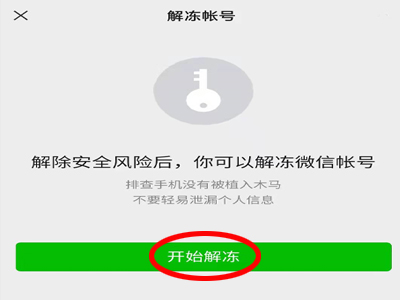 2、在解冻账号界面点击“开始解冻”,进入下一步。