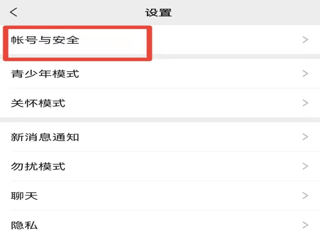 2、在设置页面,点击上方的“账号与安全”。